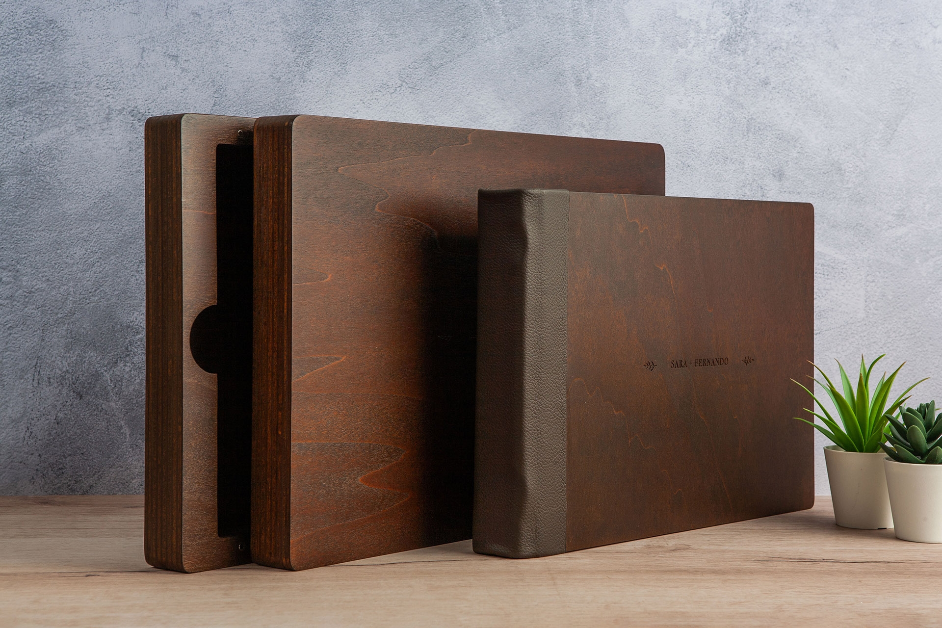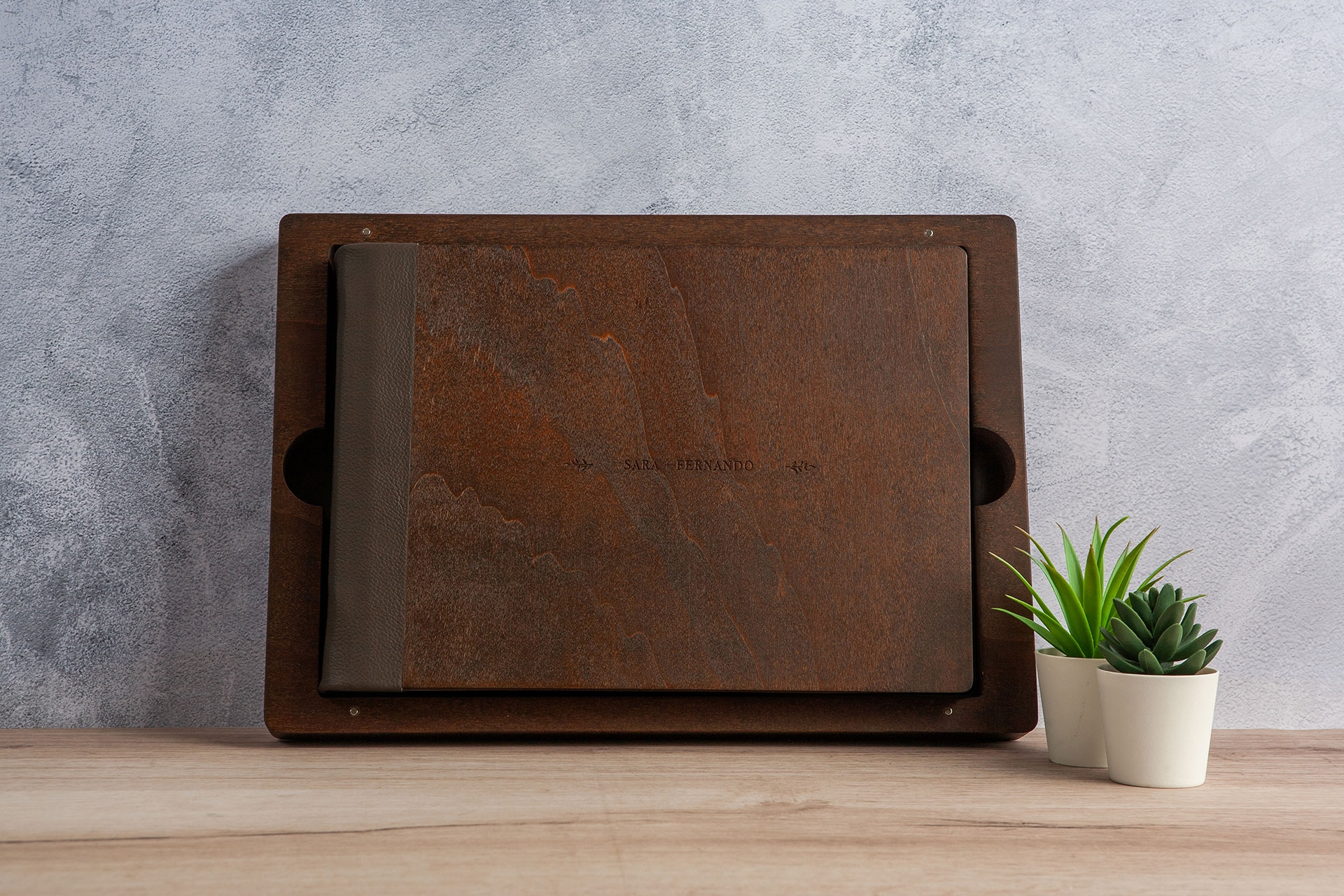 Un album à l’élégance intemporelle grâce à la couleur et au toucher délicat du bois, avec une finition parfaite en cuir véritable.